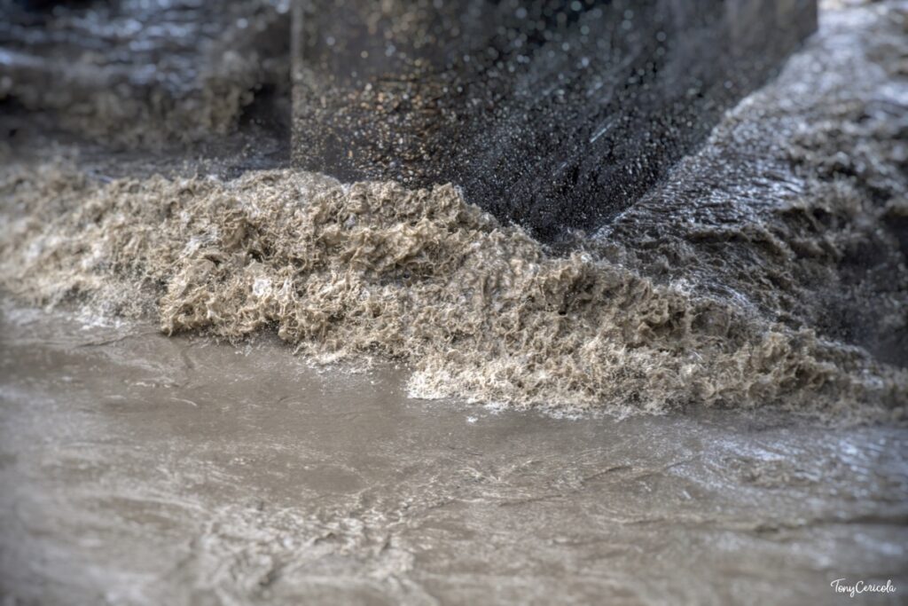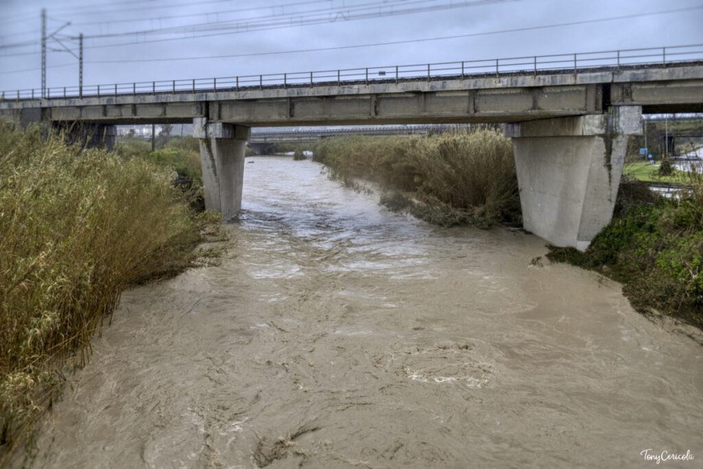«Pressoché invariato il deflusso sull’ultimo ponte ferroviario a ridosso della foce… in attesa di superare la piena.»