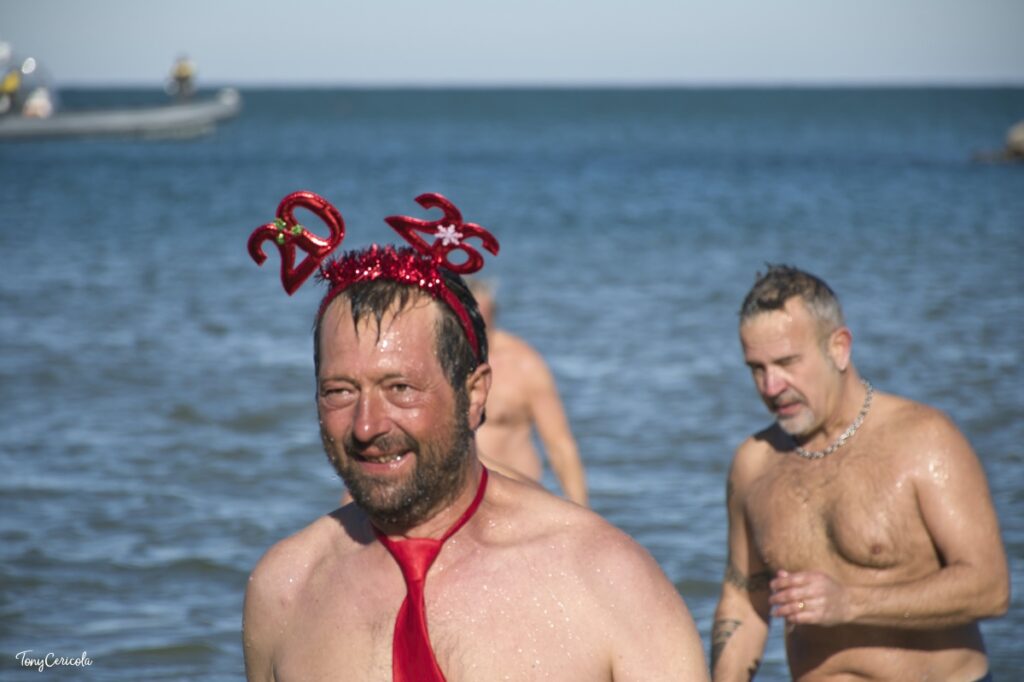 L’appuntamento è fissato per il 1° gennaio alle ore 11 sul tratto di spiaggia del lungomare nord Cristoforo Colombo, tra gli stabilimenti Stella Marina e La Lampara. Dopo le foto di rito, alle 12 scatterà la corsa verso il mare per il tuffo celebrativo, seguito dal brindisi per accogliere il 2026.