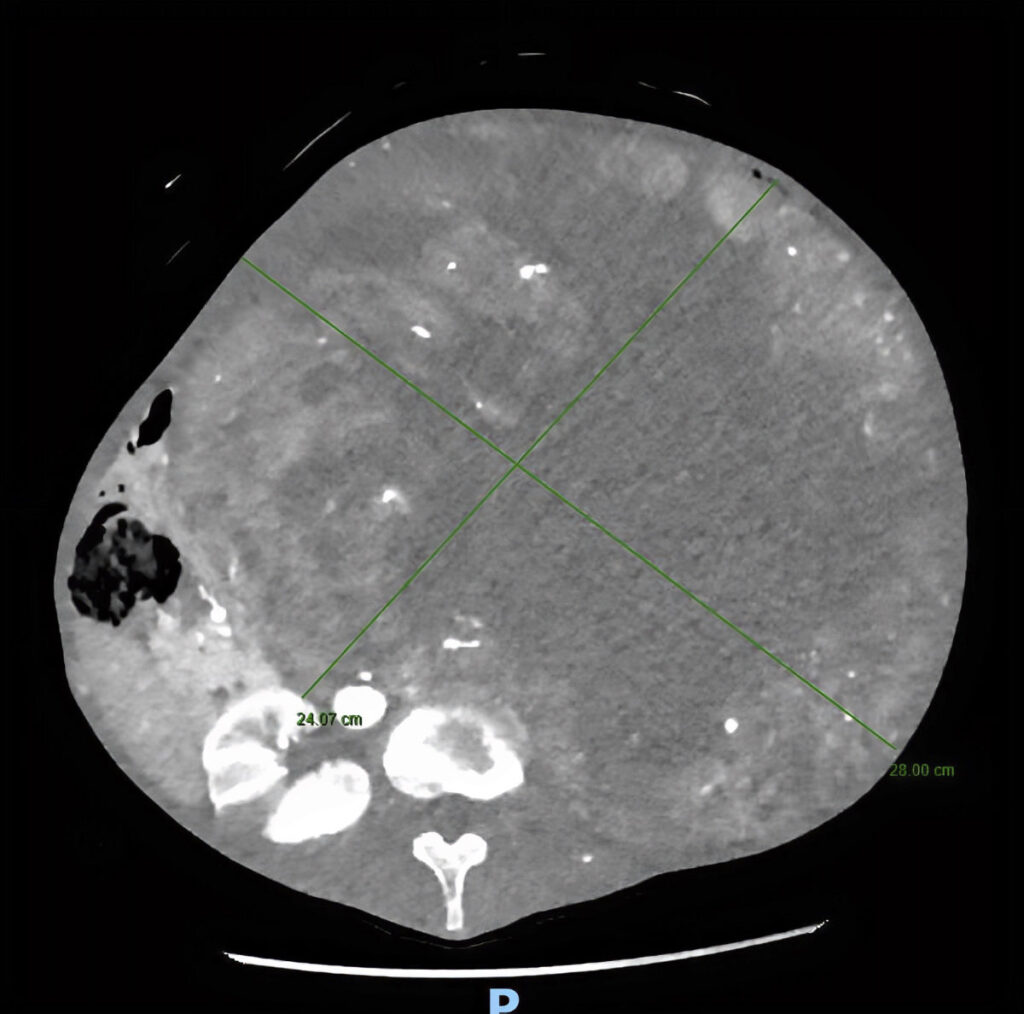 Tutto è iniziato da un disturbo apparentemente comune: la stipsi. La paziente si era infatti rivolta al Prof. Guido Sciaudone, Direttore della SC di Chirurgia Generale, per la risoluzione del problema. «Alla visita clinica è apparso evidente che il sintomo stipsi era secondario alla presenza di una voluminosa massa addominale», spiegano i medici. Gli accertamenti diagnostici hanno rivelato che la massa, paragonabile a un grosso cocomero, aveva origine dal rene sinistro e occupava l’intera cavità addominale, comprimendo intestino, fegato, milza, stomaco, pancreas e duodeno, oltre a compromettere la circolazione sanguigna.