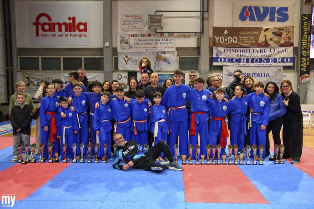 TERMOLI – Sabato 7 e domenica 8 marzo 2026, presso il PalaSabetta di Termoli, si è concluso con grande successo il 22° Trofeo Italia MSP Kung Fu Sanda e Semisanda – Gara di Forme Tradizionali, patrocinato dal Comune di Termoli e dall’Assessorato allo Sport della Regione Molise. La Scuola di Kung Fu Shaolin Kickboxing del M° Carmine De Palma ha conquistato il Titolo Nazionale MSP del Settore Kung Fu, confermandosi tra le realtà marziali più solide e competitive d’Italia.