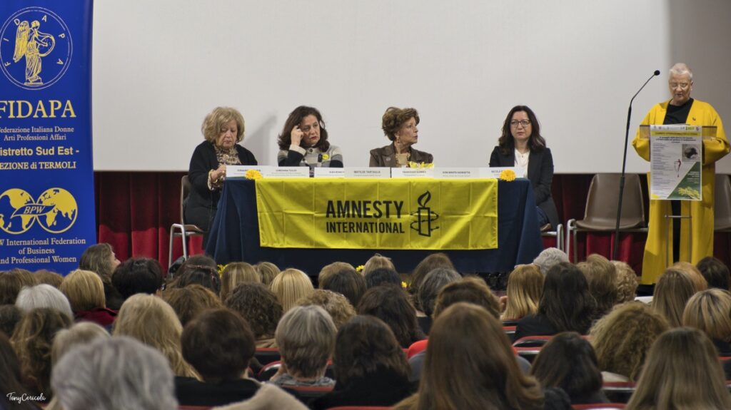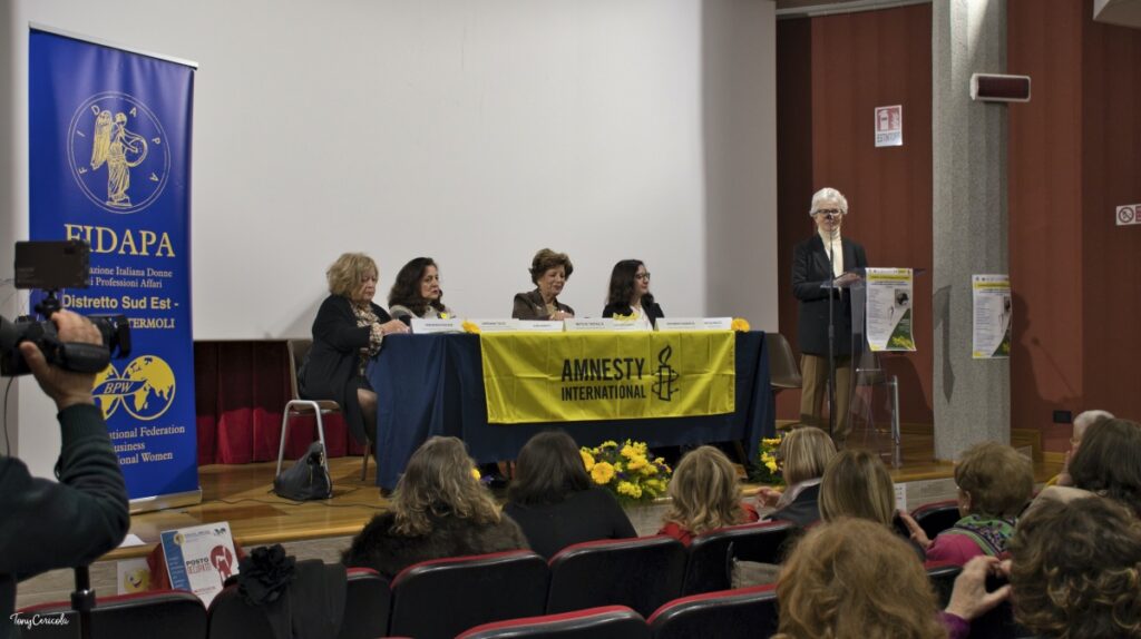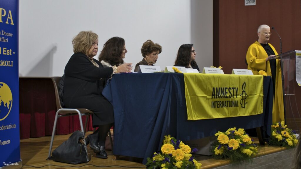 Il dibattito è entrato nel vivo con l’intervento di Antonietta Colasanto, Past Presidente della sezione FIDAPA di Foggia Capitanata (intervenuta per portare i saluti della Presidente Anna Laura D’Alessio), che ha portato all’attenzione della platea le sfide concrete che la componente femminile affronta nella società contemporanea. “Stiamo vivendo una società dove si parla tanto di donne, si creano anche normative che in qualche maniera possono sostenerci, però poi quando ci giriamo intorno e quando vediamo quello che succede in realtà, ci rendiamo conto che forse siamo veramente indietro”. Nel ricordare il suo impegno undicennale contro le discriminazioni, ha espresso un forte e personale rammarico per la recente abolizione della figura delle consigliere di parità, definite un supporto vitale: “Sono presidi fondamentali perché sono presidi in cui si ricevono le istanze delle donne che molte volte non hanno la possibilità o comunque forse non sono neanche a conoscenza di quelle che sono le sedi in cui possono andare a chiedere aiuto e sostegno”. La relatrice ha ricordato come esistano ancora pesanti forme di violenza nel mondo del lavoro, unita a quella economica e sociale, rendendo il percorso ancora estremamente in salita.