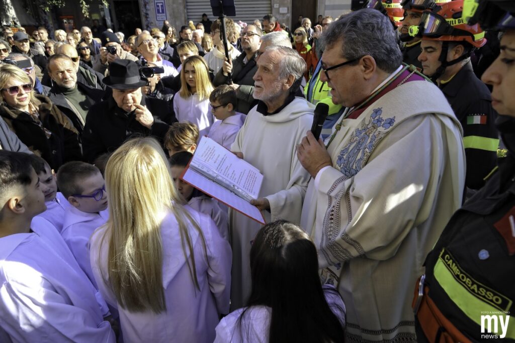 TERMOLI – Oggi, 8 dicembre 2025, la città di Termoli ha celebrato la solennità dell’Immacolata Concezione con il tradizionale omaggio floreale alla Madonnina in Piazza Regina Elena. L’evento, molto sentito dalla comunità, ha visto la partecipazione di numerosi fedeli, autorità civili e religiose. A presiedere la cerimonia è stato S.E. Mons. Claudio Palumbo, alla sua prima Immacolata come Vescovo di Termoli-Larino, dopo essere succeduto a Mons. Gianfranco De Luca. Presenti anche il Sindaco Nicola Balice, la giunta comunale, consiglieri, i Vigili del Fuoco, i volontari del SAE 112 e tanti cittadini.
