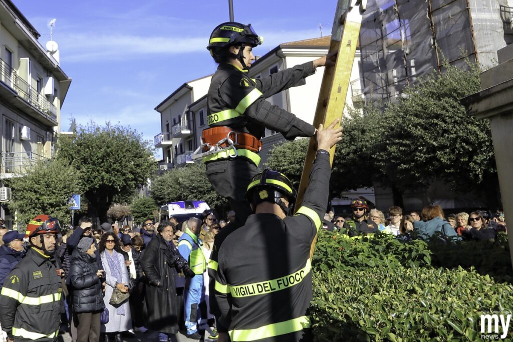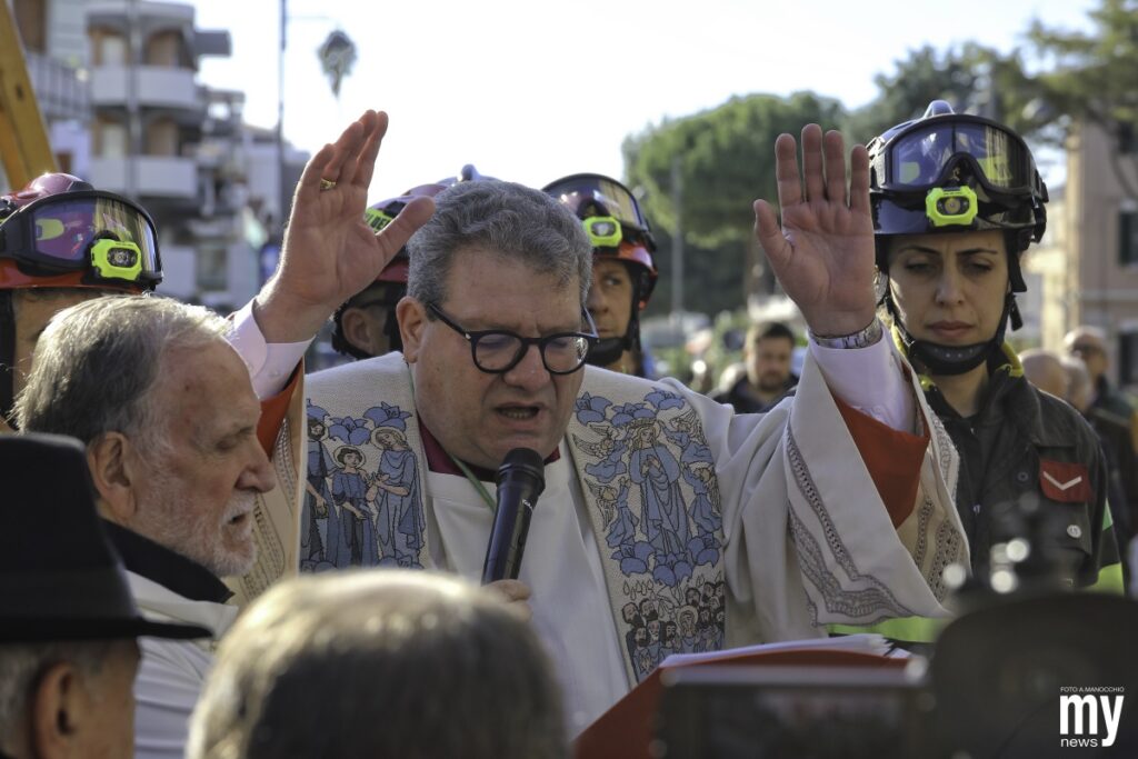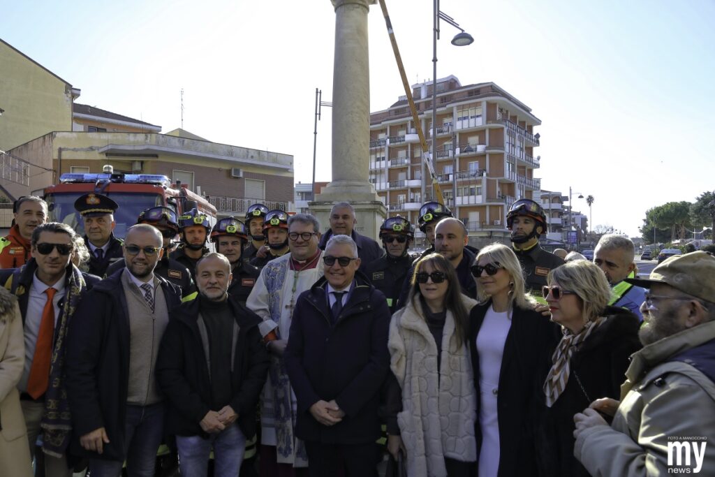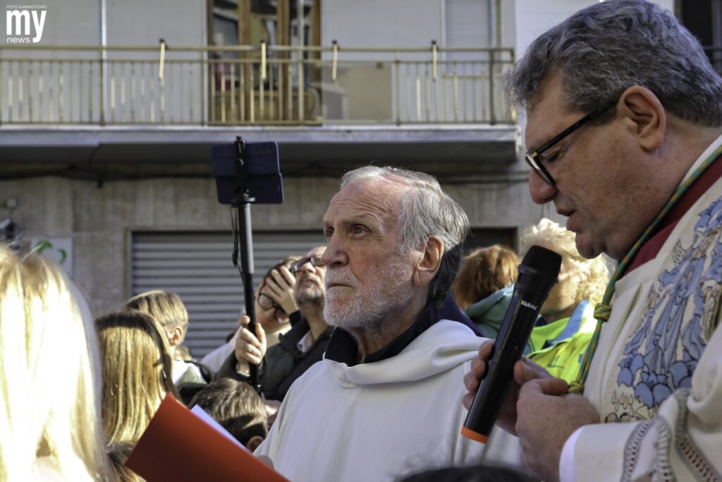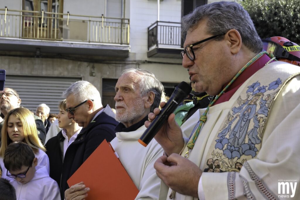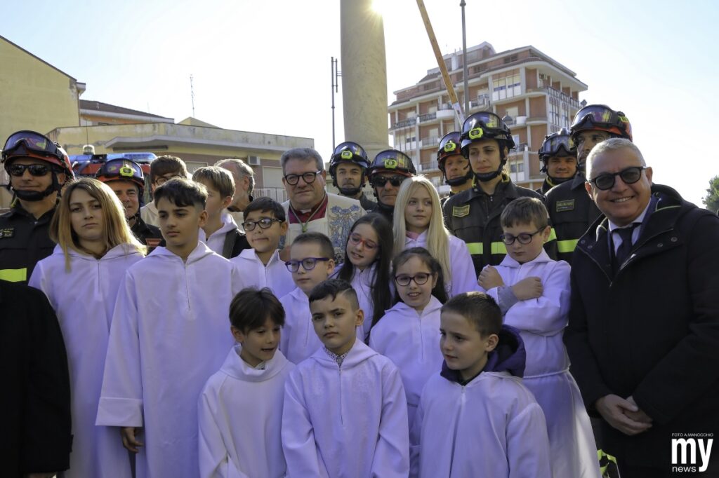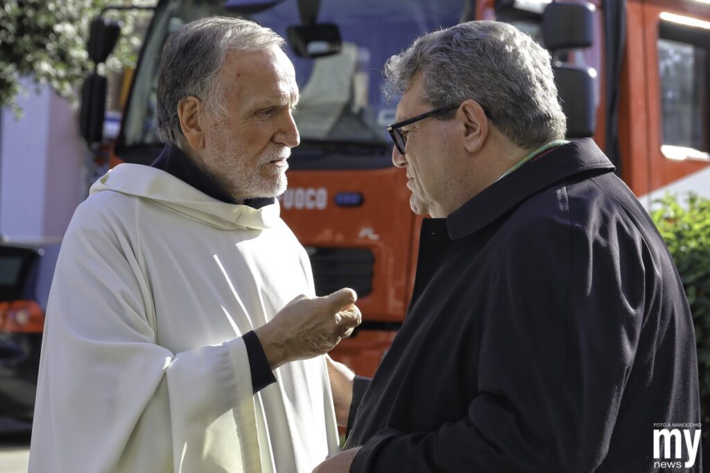 Dopo la recita dell’Angelus, il Vescovo ha rivolto il suo saluto alla città con un messaggio di speranza: «Che questa giornata sia segno di unità e di fede per tutta la comunità». Subito dopo, i Vigili del Fuoco hanno deposto l’omaggio floreale ai piedi della statua della Vergine, utilizzando la scala per raggiungere la Madonnina.