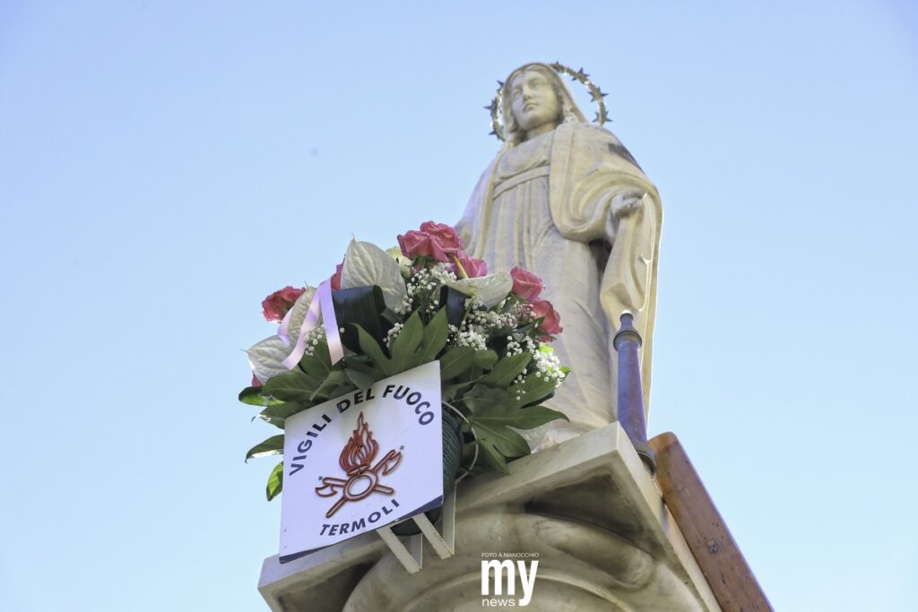 Novità di quest’anno: per la prima volta, è stata una donna a ricevere i fiori e a deporli al cospetto della Madonnina, un gesto simbolico che ha emozionato i presenti e che segna un momento storico nella tradizione termolese.