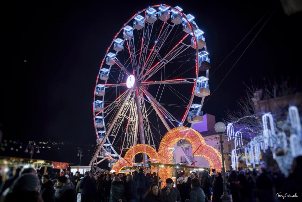Ma la festa non è finita:Il 1, 3, 4 e 6 Gennaio 2026 centro storico tornerà a brillare con nuove sorprese, tra cui la tradizionale Calata della Befana. Il percorso luminoso, le casette artigianali, la pista di pattinaggio e la ruota panoramica saranno di nuovo protagonisti, insieme a mascotte, artisti di strada e street food. L’ingresso resta fissato a 5 euro, gratuito per i bambini sotto i 130 cm, con apertura dalle 17:00 alle 22:00.