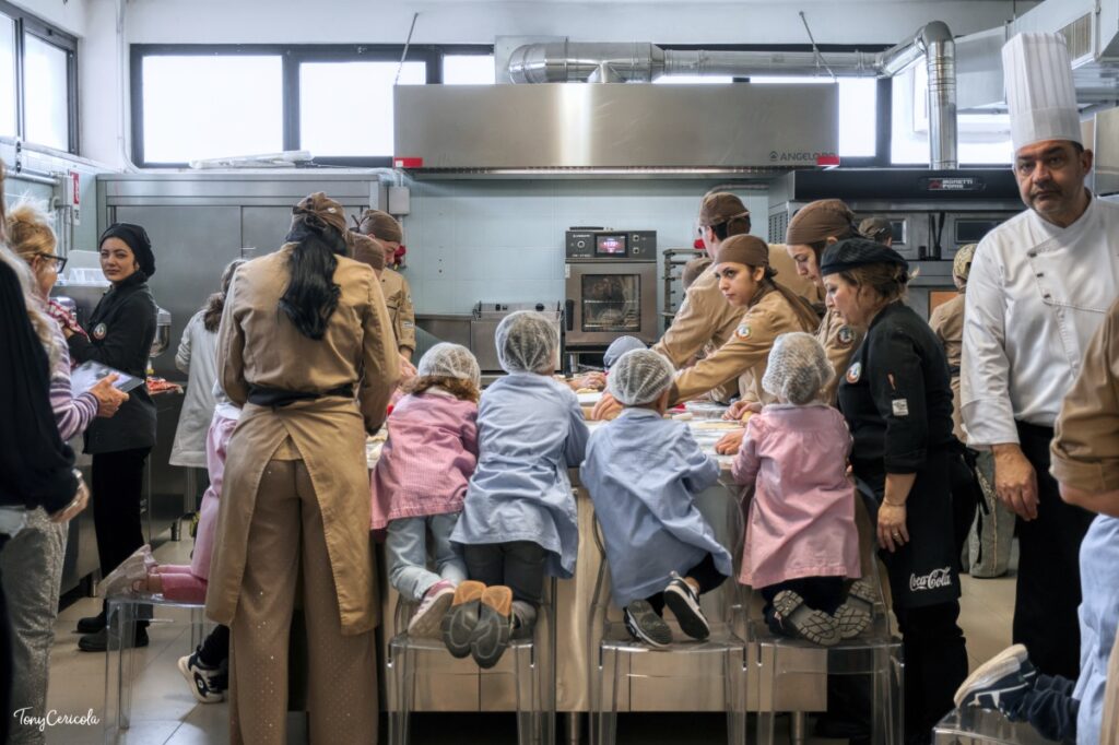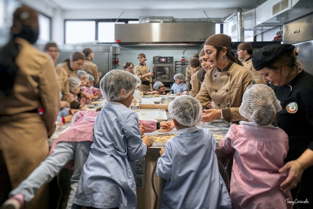 Durante i laboratori, della durata di circa due ore, i bimbi impastano, modellano e preparano piccoli dolci, che poi degustano insieme agli studenti tutor. Un’esperienza che stimola motricità fine, concentrazione e cooperazione, trasformando la cucina in un ambiente di benessere e scoperta.