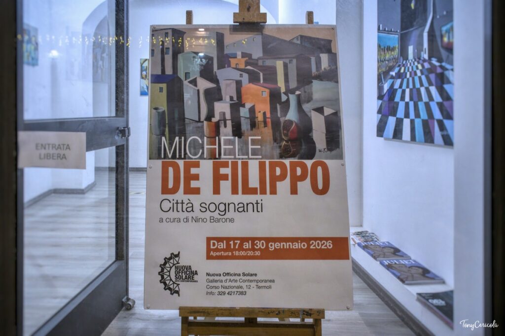 TERMOLI – Descrivere una città significa spesso osservare ciò che resta nella memoria emotiva, più che nelle cronache urbanistiche. «Chi vuole descrivere una città, la propria città, dovrebbe intraprendere un viaggio immaginario nel tempo…», scrive Nino Barone, curatore della mostra “Città Sognanti”, organizzata dalla Nuova Officina Solare Arte Contemporanea presso Corso Nazionale 12 a Termoli, visitabile dal 17 al 30 gennaio 2026.
