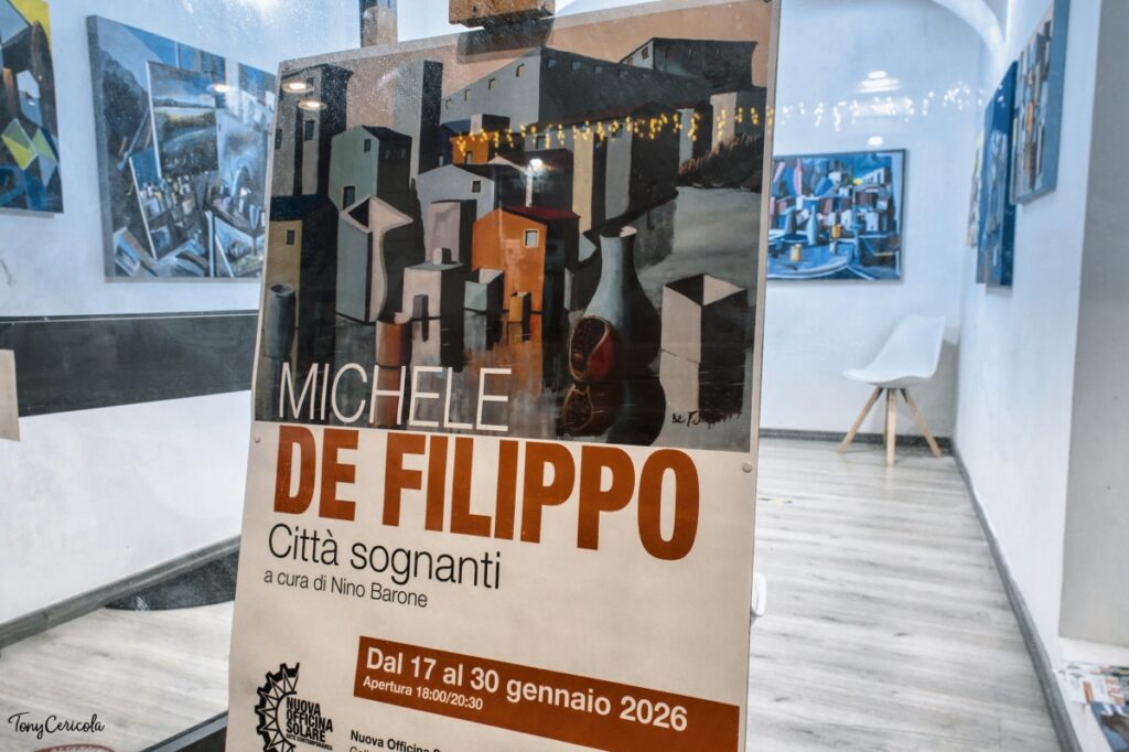 Le opere presentate in Città Sognanti rivelano l’essenza del suo mondo interiore: una pittura che non si limita a rappresentare, ma reinventa; che non riproduce, ma trasfigura. Michele De Filippo costruisce così città ideali, sospese tra ricordo e sogno, capaci di attrarre lo sguardo e coinvolgere profondamente lo spettatore.