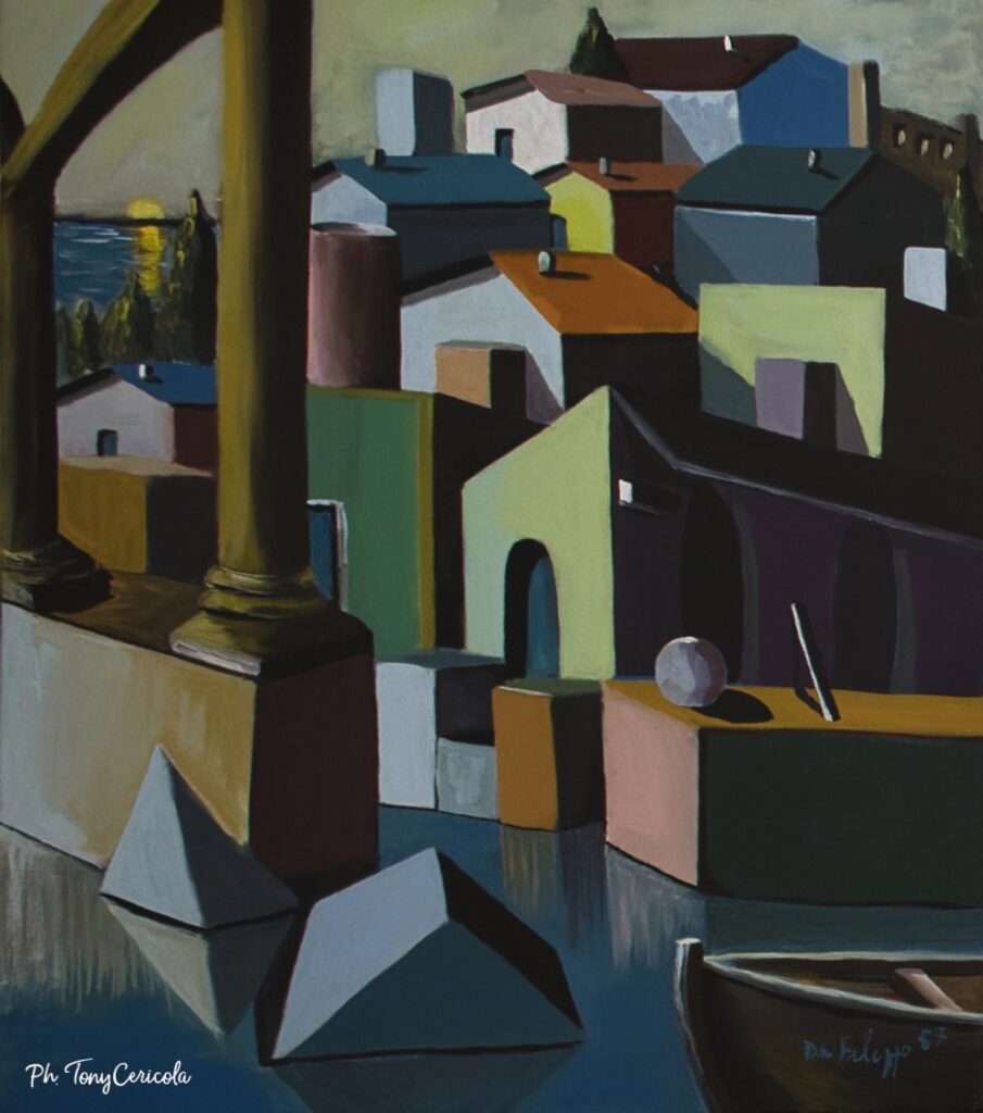 Il suo immaginario visivo dialoga con figure centrali della pittura italiana del Novecento: dalle vedute metafisiche e drammatiche di Mario Sironi, alla partecipazione emotiva di Mario Mafai, fino alla poesia lirica di Filippo De Pisis, maestro nel trasformare l’ordinario in gesto poetico. Anche in De Filippo la luce gioca un ruolo essenziale: una luminosità mediterranea che permea case e oggetti, evocando la fragranza naturale delle città marinare pugliesi.