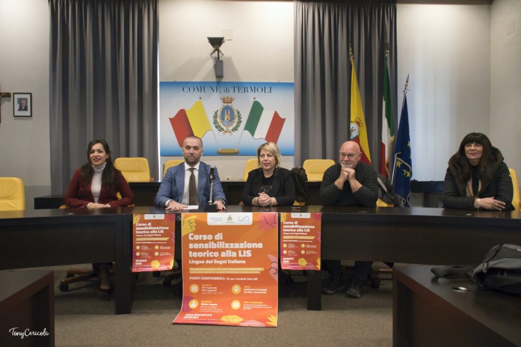 TERMOLI – L’amministrazione comunale ha presentato il Corso di Sensibilizzazione Teorico alla LIS (Lingua dei Segni Italiana), un progetto pensato per promuovere la comunicazione con persone sorde e migliorare l’accoglienza turistica, la ricettività e i servizi di primo soccorso. L’iniziativa, illustrata in conferenza stampa dal vicesindaco e assessore alla Cultura e Turismo Michele Barile, dall’assessore alle Politiche Sociali Mariella Vaino, dalla docente Diletta Coppola (Università di Parma e Bergamo), dal presidente della Pro Loco Luciano Calignano e da Antonella Occhionero dell’assessorato alla Cultura, si articola in due moduli da venti partecipanti ciascuno e si rivolge a operatori turistici, ristoratori, albergatori, Forze dell’Ordine, personale sanitario e addetti alle ambulanze.