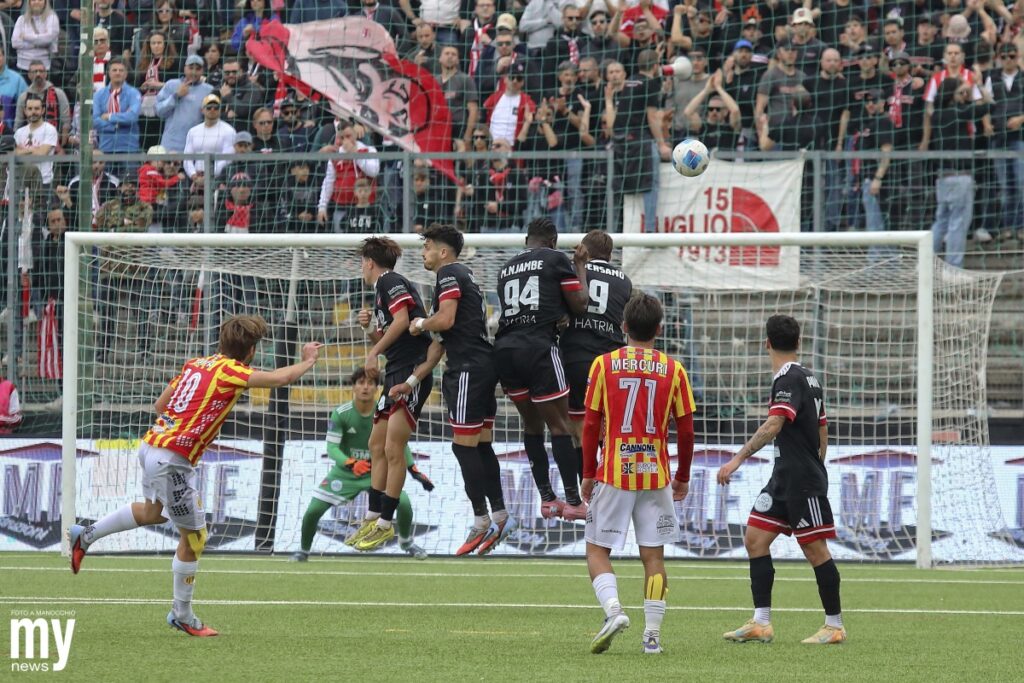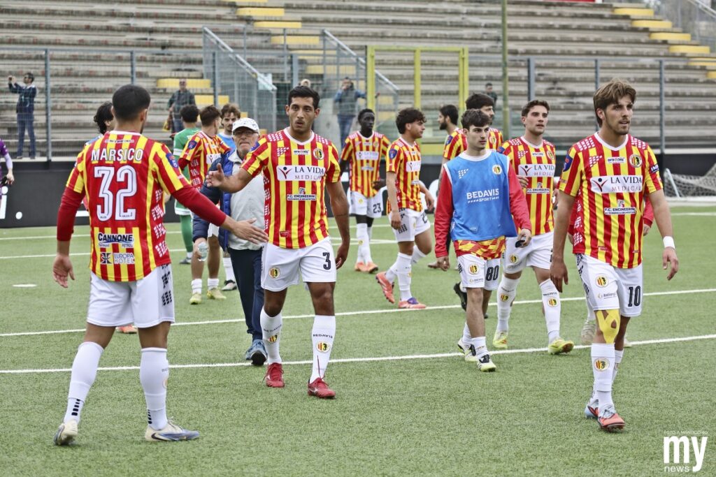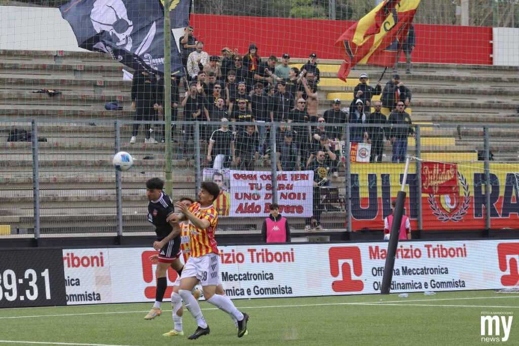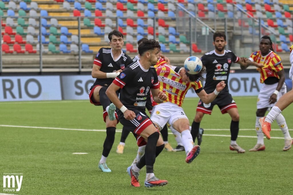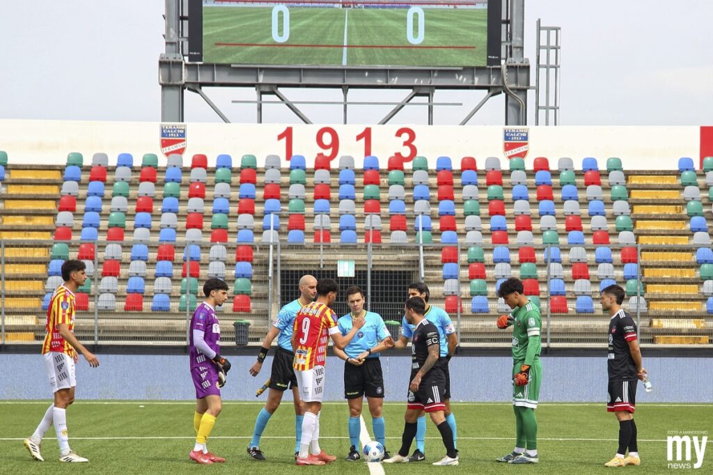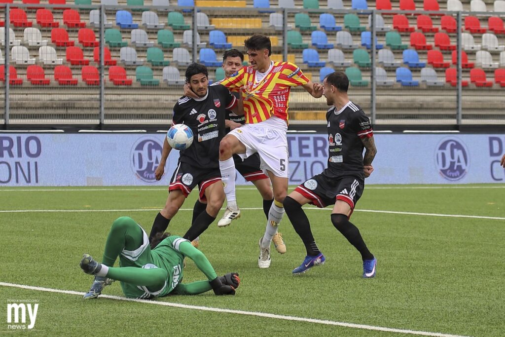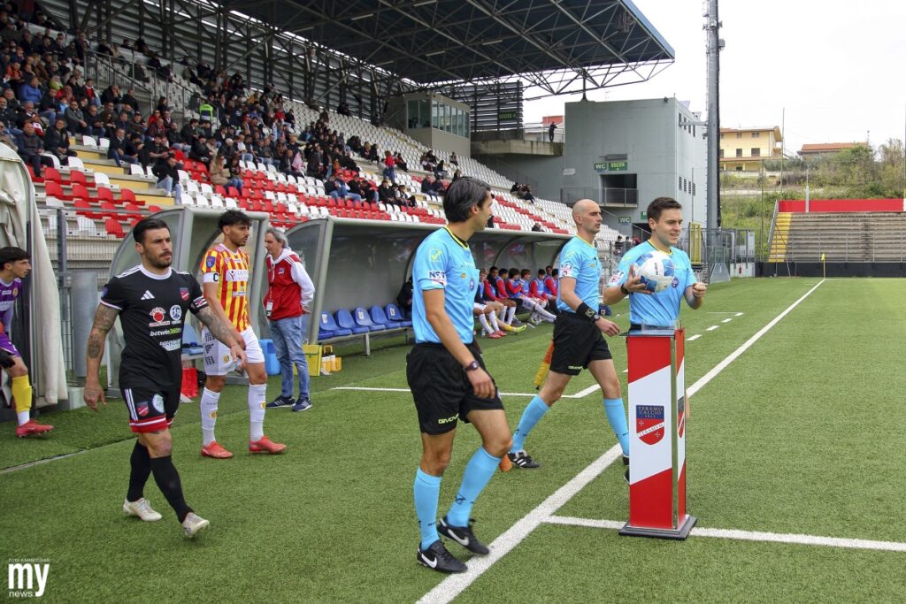 Gli abruzzesi spingono, tuttavia i giallorossi non si scompongono, restano ordinati e concentrati in campo. All’8′ minuto ci prova Pavone dal limite dell’area, ma il portiere del Termoli para in due tempi. Al 12′ minuto si vede il Termoli con Mercuri, che scambia con Colabella, e ci prova in diagonale, ma l’estremo difensore abruzzese Torreggiani fa buona guardia.