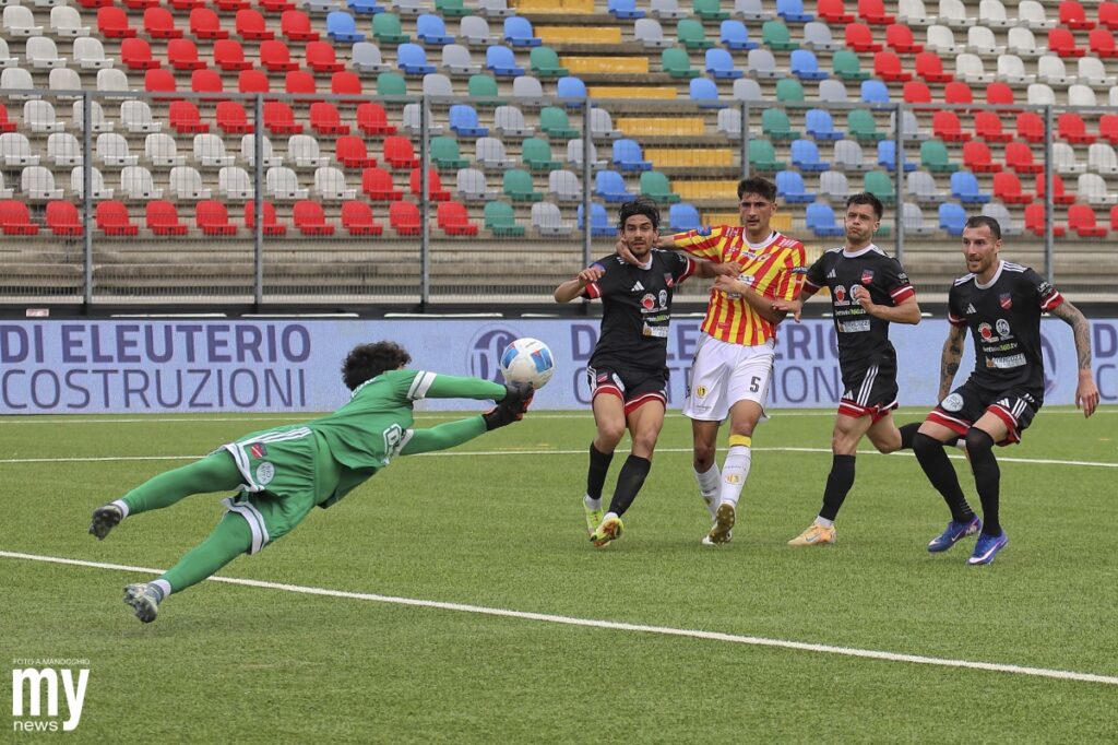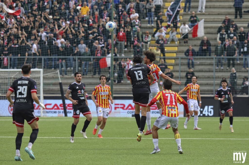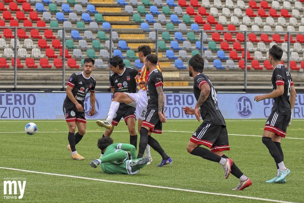 Al 24′ minuto vicinissimo al gol il Teramo con Carpani che riceve un buon cross in area da Salustri: l’attaccante abruzzese stoppa e conclude in rovesciata, ma la sfera si stampa sulla traversa difesa da Iannaccone. Da annotare alla mezz’ora una buona opportunità per Biguzzi su corner battuto da Colabella: il difensore giallorosso è lesto ad anticipare la difesa teramana in area, ma la sfera termina fuori.