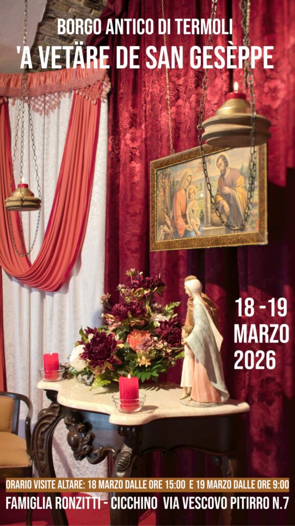 Il legame di Cicchino con questa devozione è strettamente personale e familiare: «Questo che vedete dalle foto è l’altare che allestisco a casa mia da ben 34 anni. Ho iniziato l’anno successivo alla morte di mio padre che, guarda caso, si chiamava Giuseppe, e anche per onorare la sua memoria e quella di mia madre, che si chiamava Giuseppina». Nonostante la lunga durata, il percorso ha vissuto delle brevi interruzioni, trasformate però in opportunità di condivisione: «Quest’anno è il 34º anno, nonché il 33º altare, perché siamo stati fermi per due anni a causa del Covid. Abbiamo pensato, in uno di questi due anni, di fare una versione estiva per i turisti e la risposta è stata tanta da parte loro, un po’ meno da parte dei termolesi che non leggono il mese di agosto come ricorrenza del San Giuseppe. Però siamo rimasti soddisfatti per aver trasmesso e fatto conoscere questa tradizione ai tanti turisti che girano e che vengono a visitare Termoli e tutte le sue bellezze».