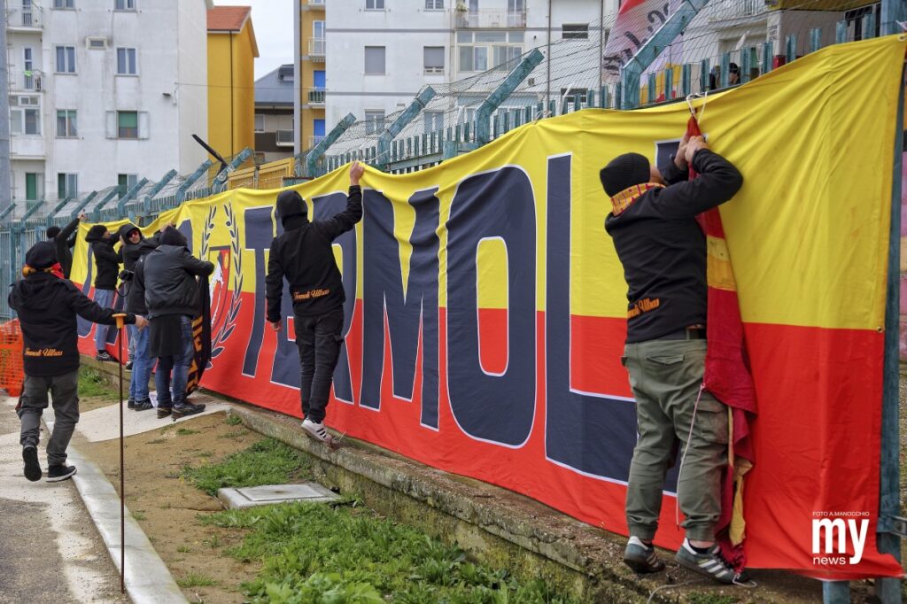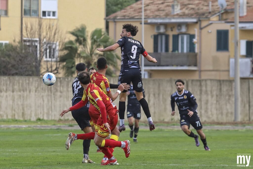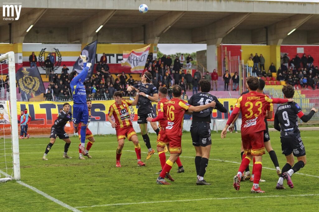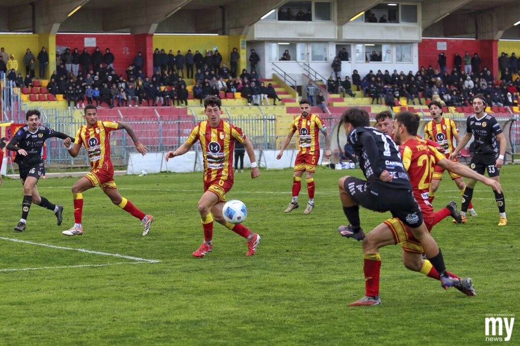 Ad un certo punto, ci sarà una successione infinita di corner a favore del Termoli, ma in nessuno di questi riuscirà a trovare la via del gol. Al 65’ minuto, grazie al favore del vento, Mercuri sfiora la realizzazione proprio da calcio d’angolo, la palla assume una parabola insidiosa che si stampa sul palo della porta abruzzese. Mister D’Adderio, alla ricerca della marcatura vincente, intorno alla mezz’ora di gioco della ripresa, richiama Romano e Colarelli in panchina, al loro posto inserisce Cancello e Pepa (quest’ultimo giovane neoacquisto dei giallorossi) lasciando così schierate ben tre punte in campo.