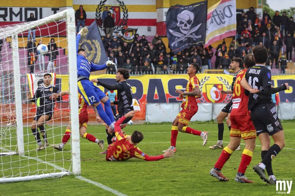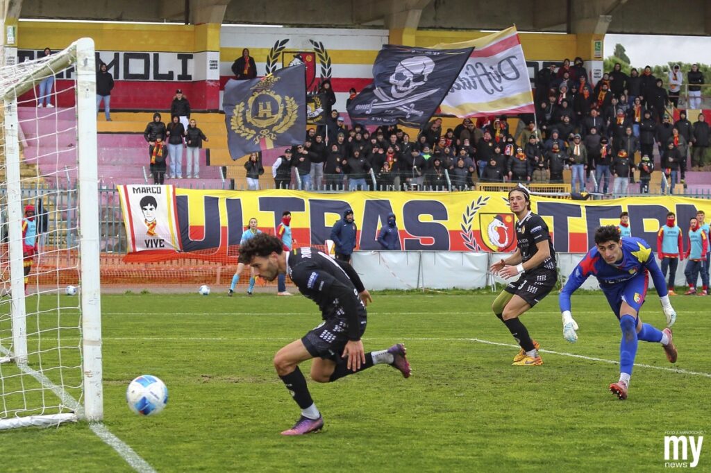 Purtroppo, la beffa è dietro l’angolo: proprio a 5 minuti dallo scoccare del 90’ minuto, arriva imprevedibilmente la rete degli ospiti. Tutto parte da un errore di Tracchia nelle retrovie, che si fa soffiare la palla da Guerriero, quest’ultimo serve in area Misuraca che batte a rete, complice la deviazione di Magnani in copertura, la sfera si inarca ed entra nella porta di Iannaccone. Uno a zero per il Giulianova.