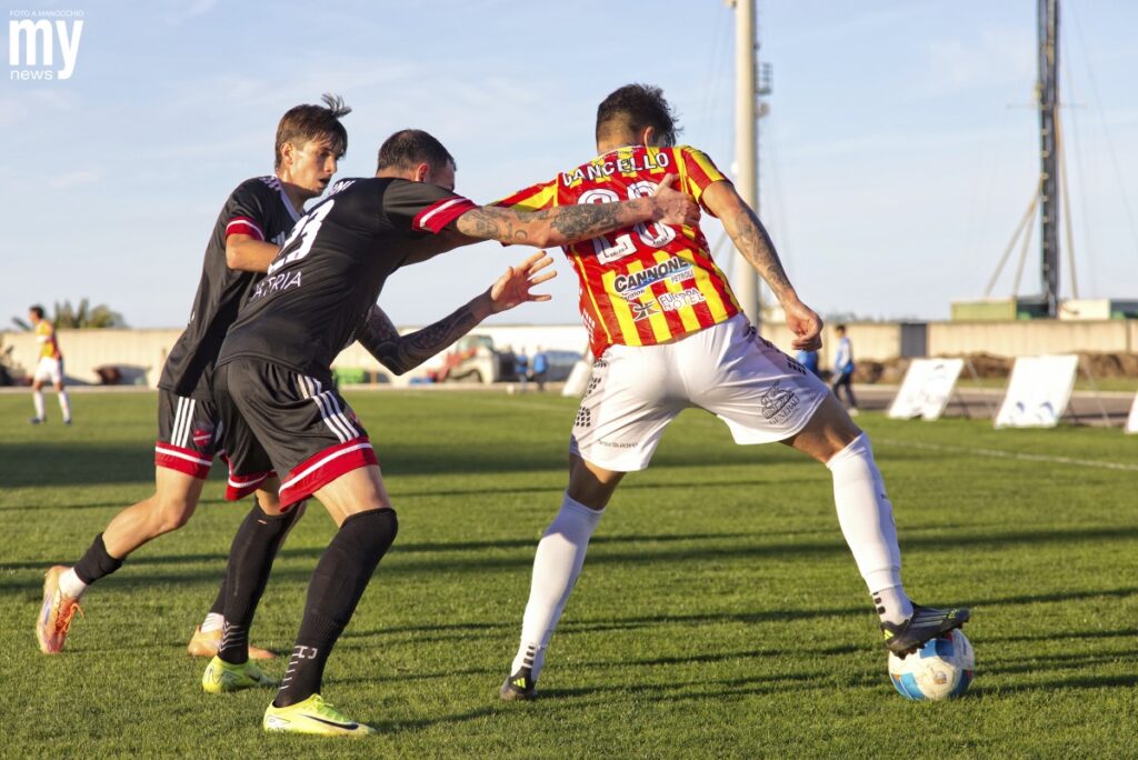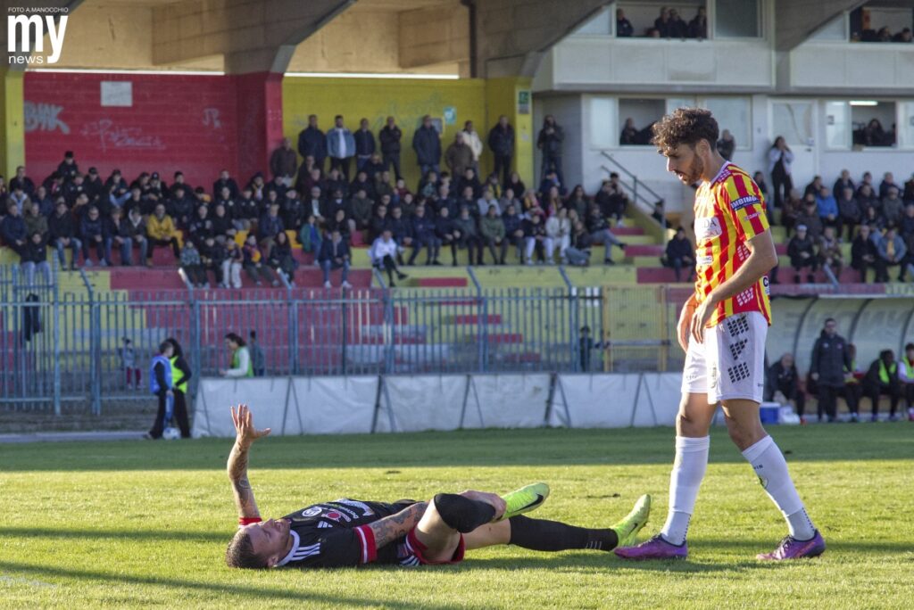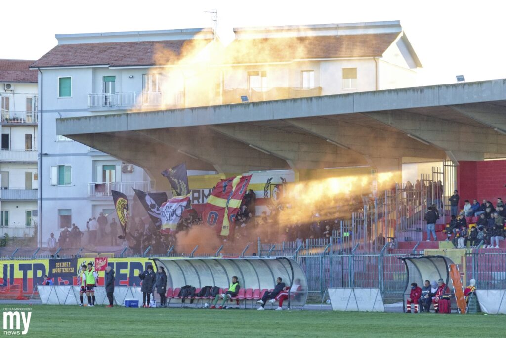 Il Termoli, seppure in inferiorità numerica, non demorde e non rinuncia al gioco di rimessa. Al 90’ minuto è Staffa che manca di un soffio la marcatura, il suo stop e tiro dal limite si stampa prepotente sul palo alla sinistra di Torregiani, che resta immobile a guardare e gela i tifosi ospiti.
