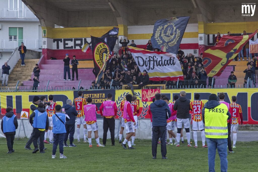 L’ultimo quarto d’ora di gioco è concitato, il Termoli resta in dieci dopo l’espulsione di Ceesay. Ci prova Vitali Borgarello dalla distanza per il Teramo, ma il suo tiro è fuori misura. All’83’ minuto è ancora il Termoli con l’incontenibile Mercuri ad involarsi sulla fascia sinistra ed entrare in area, ma la sua conclusione, piuttosto dimenticabile, vola alta sulla traversa.