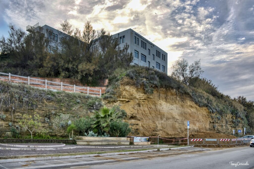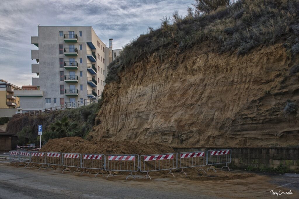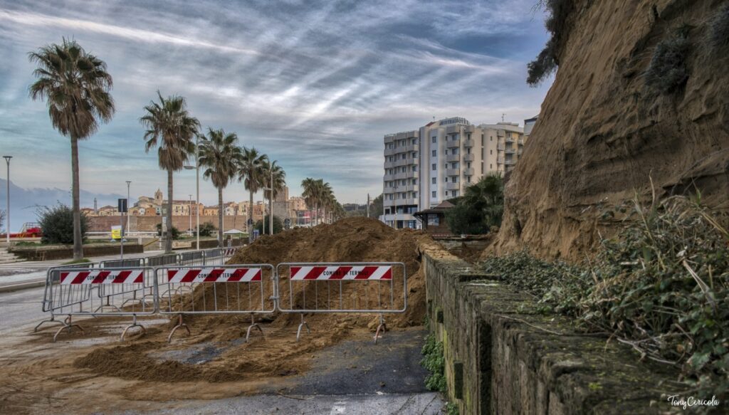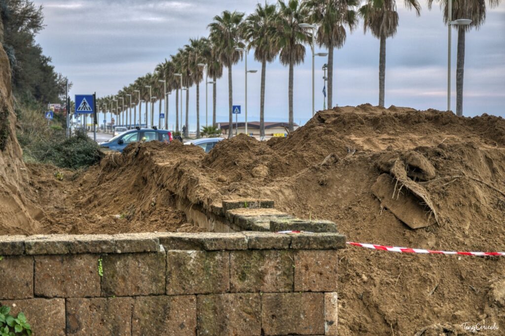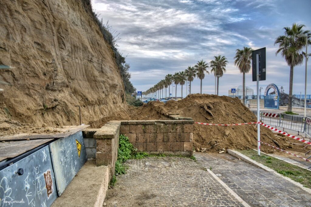 Distacco di arenaria sul lungomare nord: area chiusa al traffico, nessun danno segnalato.