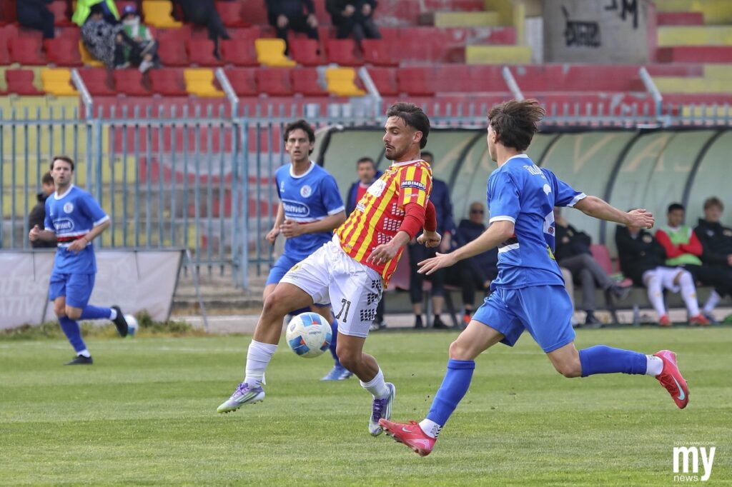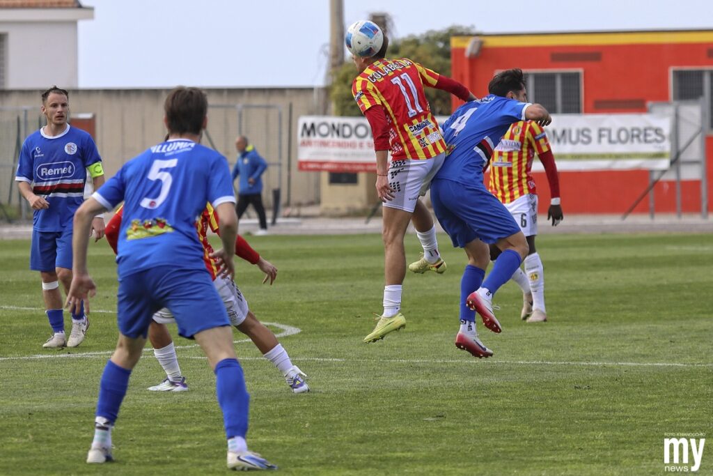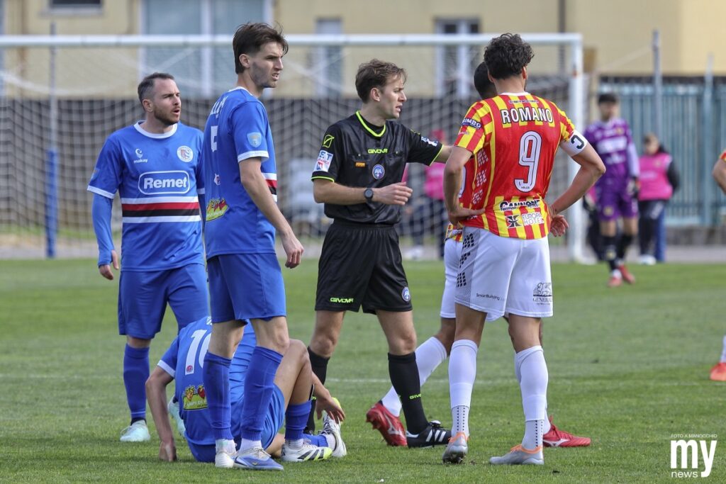Nella ripresa, i padroni di casa tentano di proporsi con più decisione, ma restano evanescenti nelle conclusioni. Dopo pochi minuti dall’avvio, una punizione dal limite di Colabella viene murata in corner dalla barriera marchigiana. Dagli sviluppi di un successivo calcio d’angolo, al 53′ Magnani prova a svettare in area, ma nulla di fatto per i giallorossi.