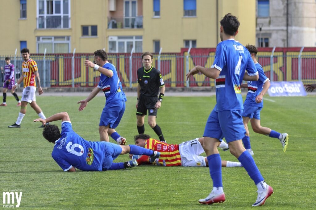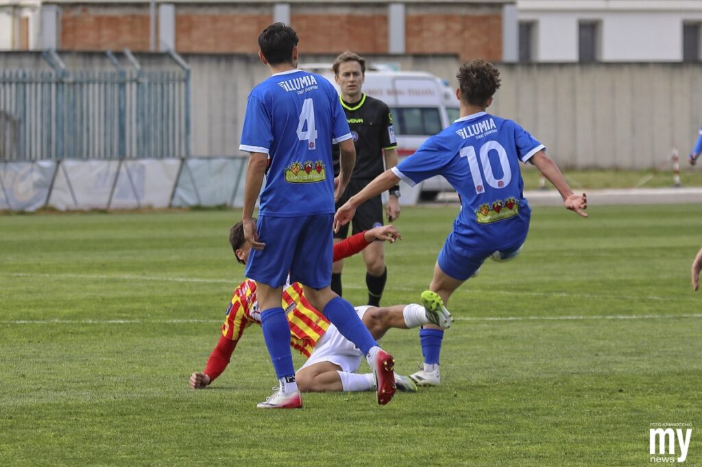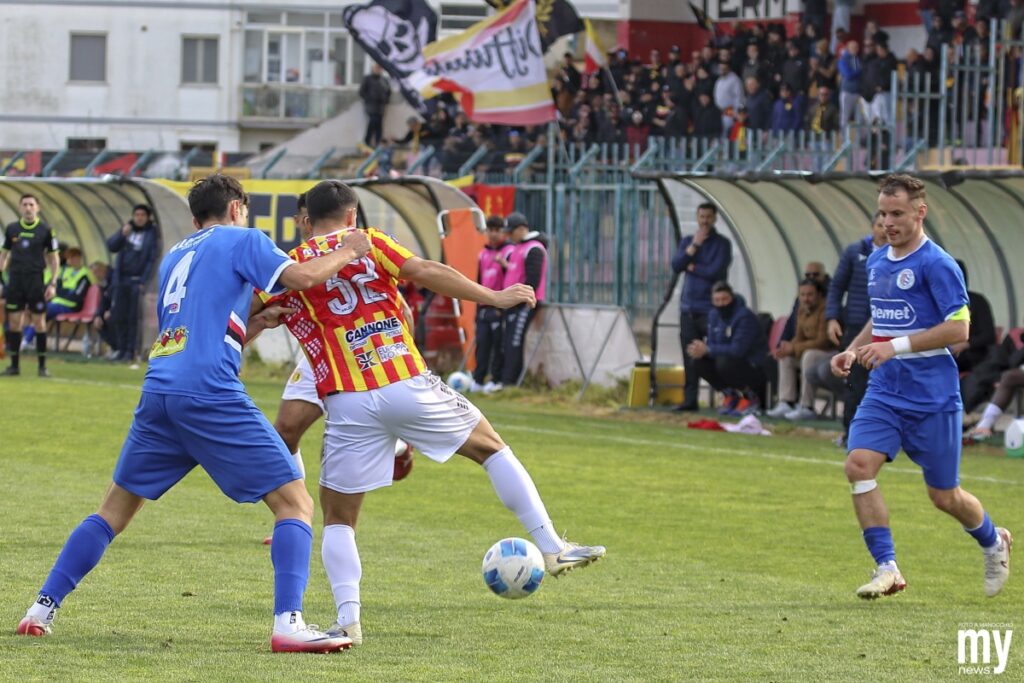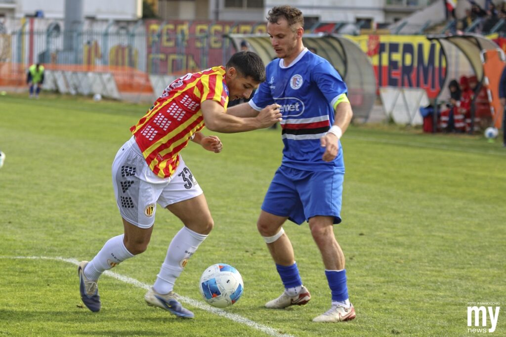 Il Termoli, infatti, stenta non poco a trovare varchi per penetrare l’arcigno reparto difensivo dei marchigiani. Oltretutto, mister D’Adderio ha dovuto vedersela con le numerose assenze di titolari: gli espulsi Biguzzi e Cancello e l’infortunato Colarelli.