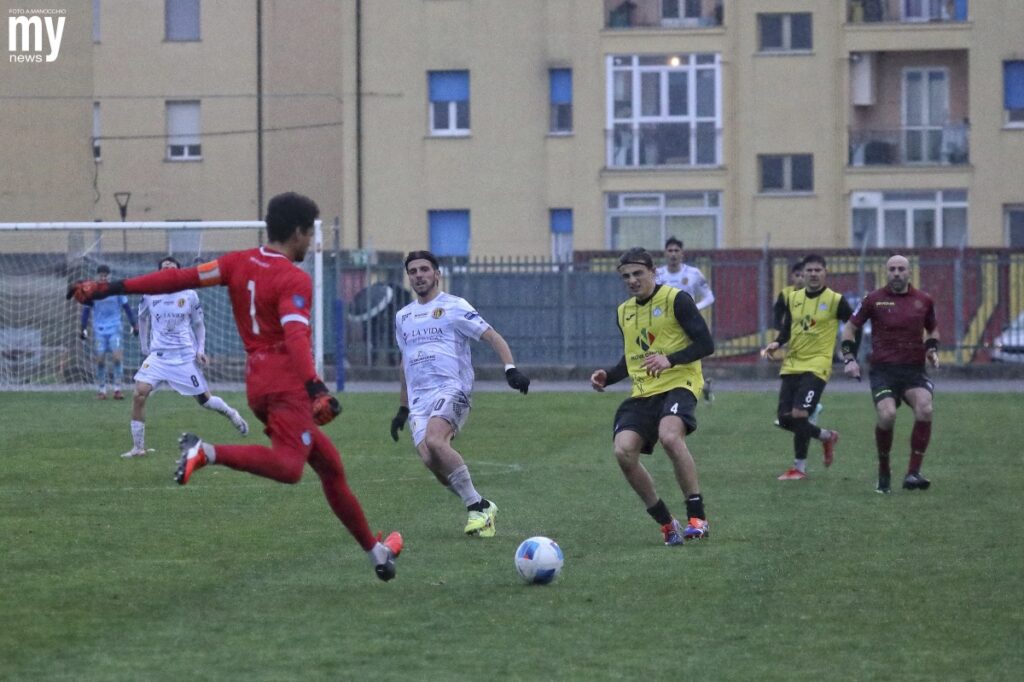 Nella ripresa si ripropone lo stesso cliché d’avvio partita, con il Termoli che comunque predomina il campo ma non concretizza. Bisogna, però, aspettare il 63’ minuto perché il risultato si sblocchi: corner battuto da Colabella e Magnani, nella mischia in area, si inserisce di prepotenza e colpisce a rete, imparabilmente. Il Termoli va così in vantaggio per una rete a zero, risultato sin qui ampiamente meritato.