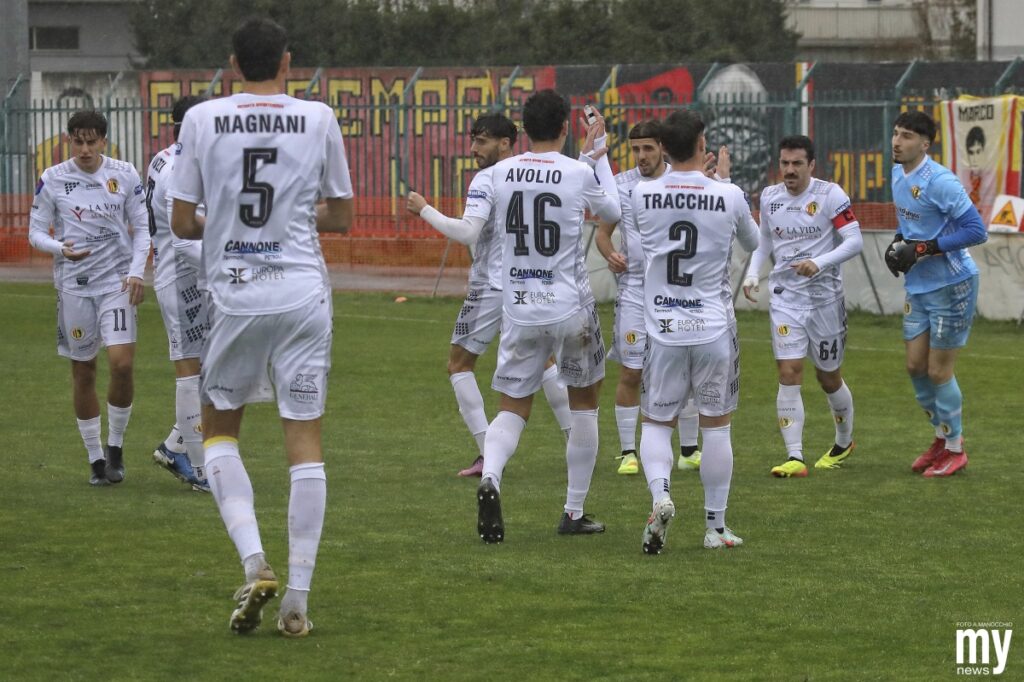 A questo punto, Mister D’Adderio, come di consueto, inizia una serie di sostituzioni per rigenerare e coprire la squadra. Tuttavia, proprio quando l’agognata vittoria sembrava ormai alla portata, in pieno recupero, arriva la beffa: Boubacar Sambou riceve un buon cross in area e incorna la sfera, battendo Iannaccone. La difesa termolese resta inspiegabilmente “imbambolata”. Il San Marino pareggia così al 92’ minuto, in piena zona cesarini, lasciando lo stadio Cannarsa sgomento. Ormai, non c’è più tempo per reagire e il tabellino al triplice fischio finale marca 1-1.