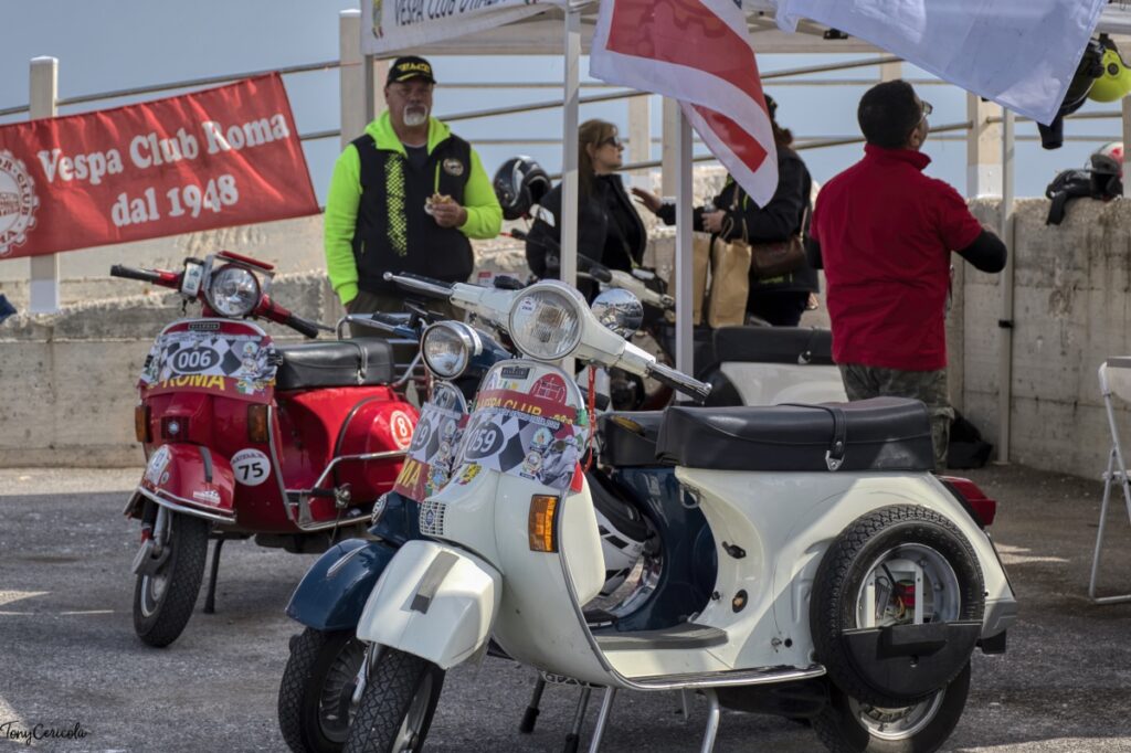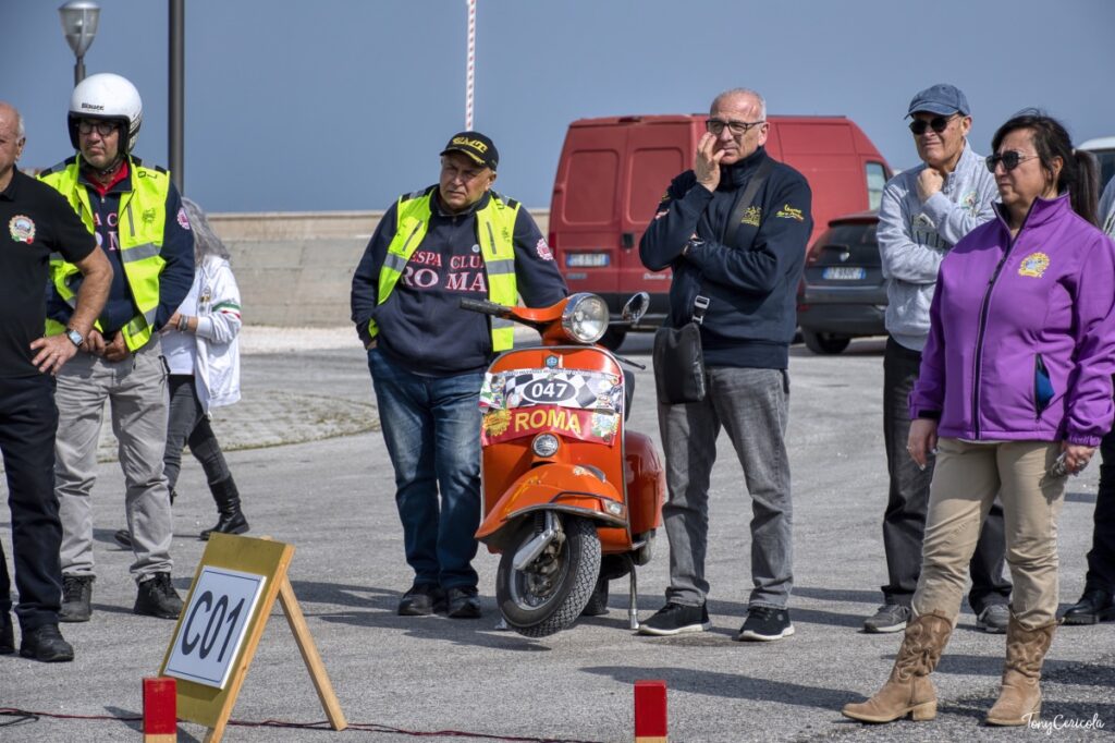 Il programma ha previsto il ritrovo alle ore 12:00 alla Marina di San Pietro dove ci sono stati anche i rappresentanti dell’amministrazione comunale a dare il loro saluto all’evento. La gara vera e propria è iniziata alle 14:00 e alle 15:00 c’è stato un rinfresco e un momento di convivialità che è stato occasione per condividere racconti di viaggio, aneddoti e quella fratellanza che rende unico il mondo vespistico.