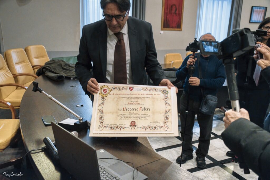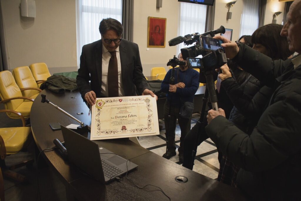 TERMOLI – Nella sala consiliare del Comune di Termoli, in collegamento con Milano, si è svolta questa mattina la cerimonia di conferimento a Vittorio Feltri dell’Onorificenza del Molise e della Fierezza Sannita, organizzata dalla Presidenza del Consiglio regionale del Molise con la partecipazione del giornalista Maurizio Varriano, del sindaco Nicola Balice e dell’Azienda Autonoma di Soggiorno e Turismo del Molise. Durante l’evento, Feltri ha presentato anche il suo ultimo libro “Chi non legge è perduto”, definito dall’autore come «un invito alla riflessione e alla riscoperta del valore della cultura».